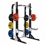 Built with heavy-duty steel tubing and a durable powder-coated finish, the Half Rack delivers exceptional strength and long-lasting durability for both home and light commercial use. It includes adjustable J-hooks and safety bars to accommodate various exercises and user heights, ensuring confidence during every lift.