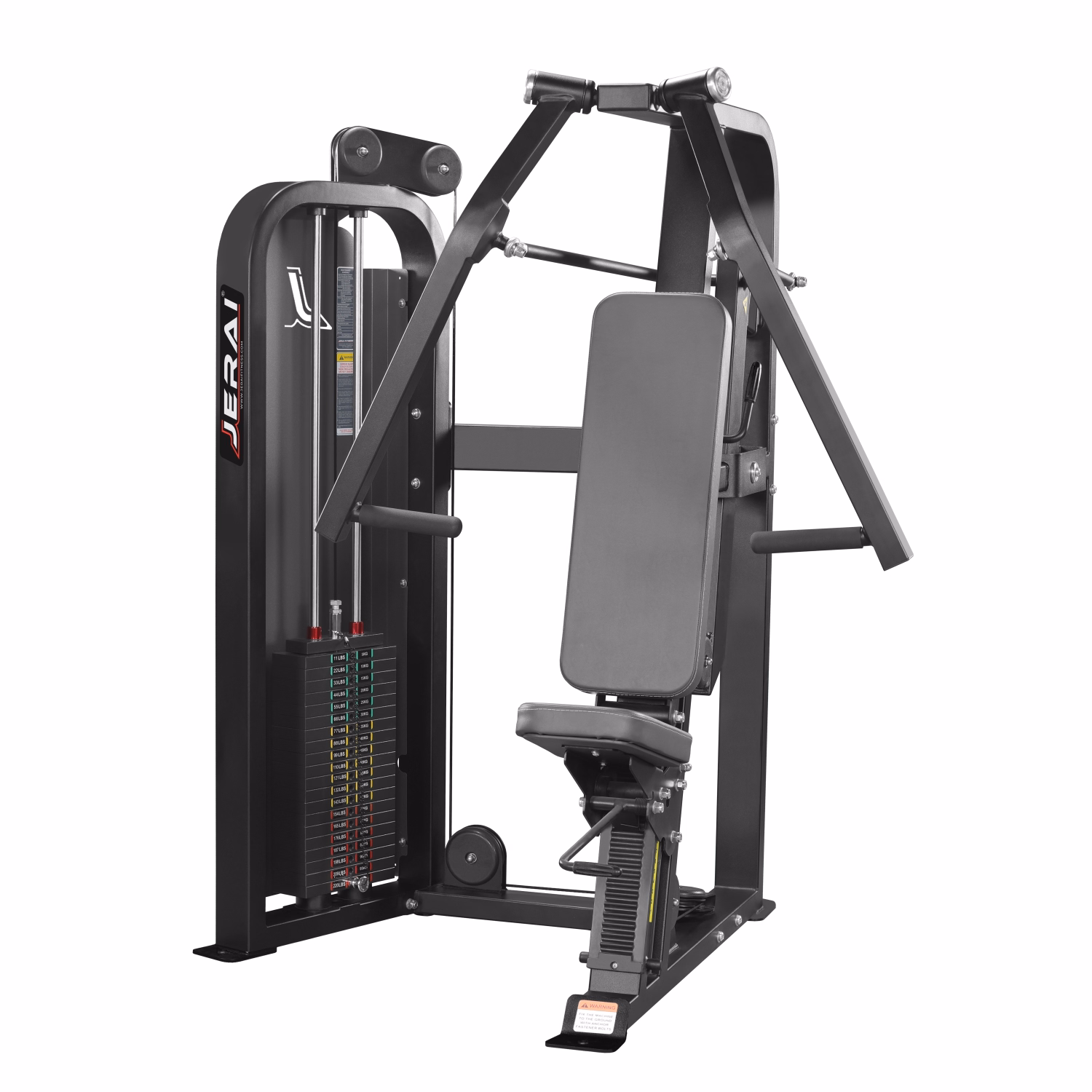 Comfortable seat rack in pinion arrangement from the beginning position. Multiple position hand grips for various range and the weight stack caters to a larger client base. The Jerai Fitness Vertical Chest Press provides a maximum weight of up to 220 lbs.
